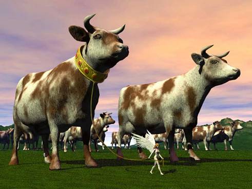 “Аз, вразумителят Елма, призовавам Бхарата на бой, на свещена идейна и дипломатическа война срещу богопрестъпниците в Швейцария. В най-щастливото Христово Царство в Европа, където Агарта за пръв път встъпи в политическо владение, напоследък се обяви жестока астрална война срещу Индия. Моята Майка – Великата Пралайя, Свещената Крава в същата тая “Христова” Швейцария - в момента се подлага на тореадорски кощунства, понеже банкерската бюргерска бълвоч с испански астрал и от испански прераждания реши, че Бог трябва да бъде разиграван по съвременните швейцарски кориди с крави! Ако Индия не постави търговски, политически и хуманитарни бариери пред портиерското, хотелиерско касапство по отношение на Великата Дарителка на Живота, то Аз лично ще предизвикам такова страхотно бедствие в Швейцария, че името Ми ще има да се помни дълго. Ултиматумът подтиквам Аз; нотата да се изпрати от Моята най-висока територия на Земята. Срок – август 1989г. Ясновселената в момента е бясна, понеже, ако някъде се направи корида със свине, пак ще побеснее и ще вдигне своя многомилионен мохамедански народ по света, за да накаже предателя. Свинското наистина се отрича от лунните народи поради неговата нечистота, ала суфите в умствения и духовния свят считат свинята за свещено животно, под закрилата на Селена. Не случайно свинята е по-умна от кучето и слона, ако се знае как да се възпитава. Ако сте чисти пред Мен, чрез Глигана Аз мога да направя чудеса в земеделието. Пред свинското, културните бъдещи народи ще предпочитат “свинската оран” – та земя, обработена наесен от зурлите на подобни стада и от тяхната тор, ще даде десетократно повече. Ако Ме слушате, ще ви кажа през какви трансформации преминава всяко животно, за да проговори на човешки език и да ви предаде науката в неговия вид.”