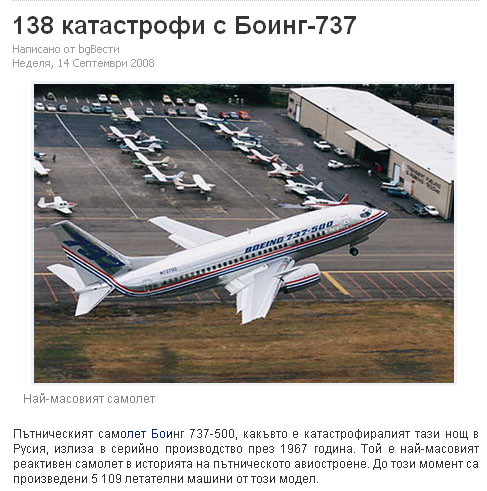 От по-подробна статистика от интернет се вижда колко висок е процентът на най-тежките катастрофи с Боинг с 737 и 747, а също и на за 727, 757, 767 и пр.: